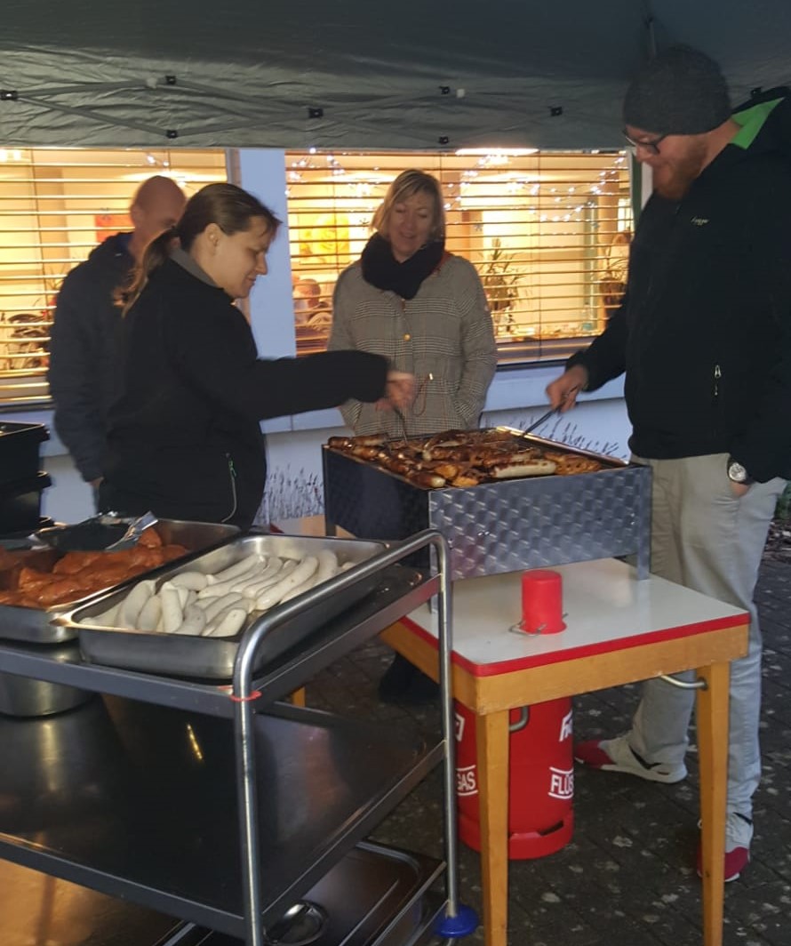 Heimleiter Sebastian Steinweg bewies seine Wetterfestigkeit, und grillte für alle Anwesenden Bratwurst und Steaks, so dass für das leibliche Wohl gesorgt wurde.